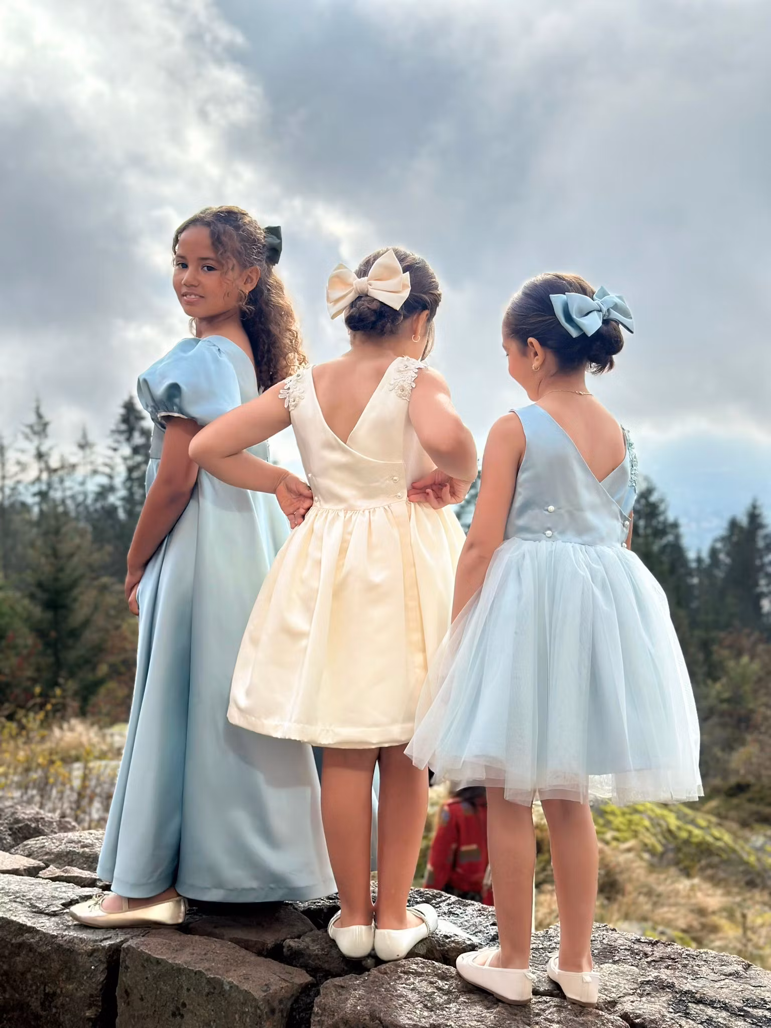 Matcher perfekt med våre sateng hårsløyferIdeell for brudepiker, blomsterpiker og spesielle anledningerEn tidløs kjole som gjør enhver liten blomsterpike helt magisk.