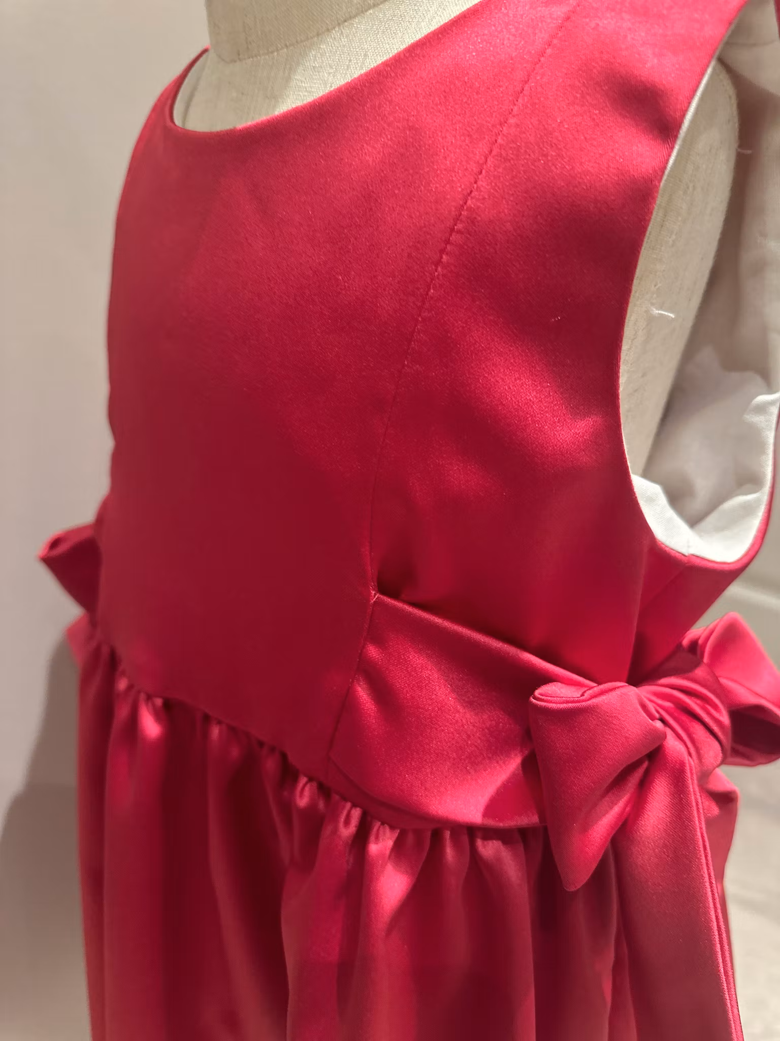 En drømmekjole med fôret overdel. Knapper i ryggen og store sløyfer som knytes i sidene.