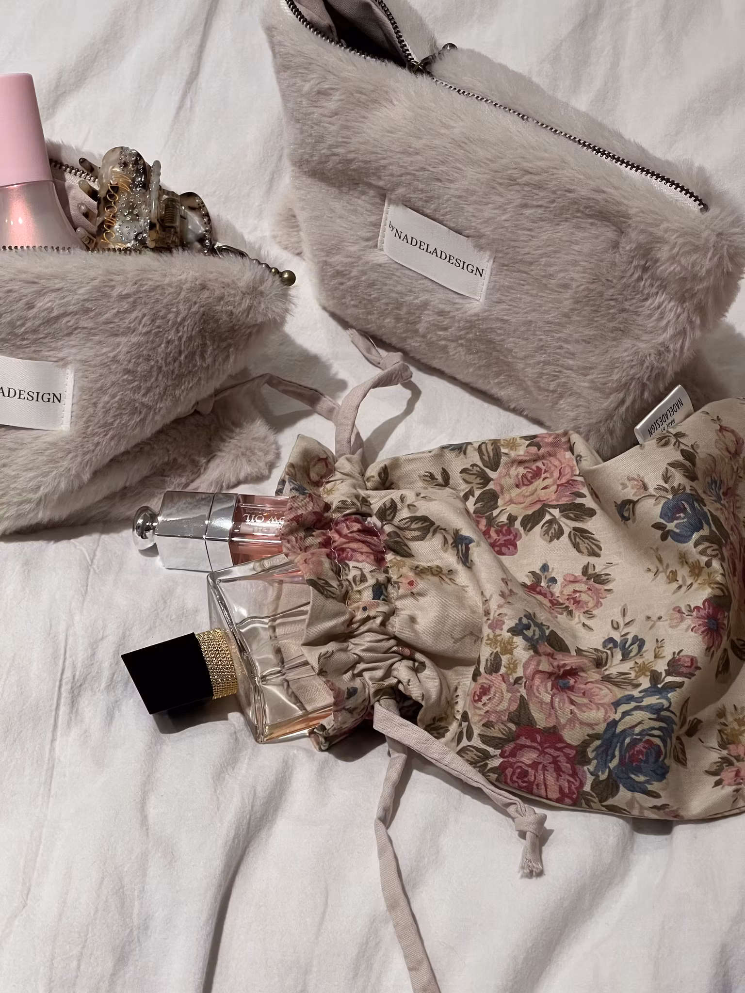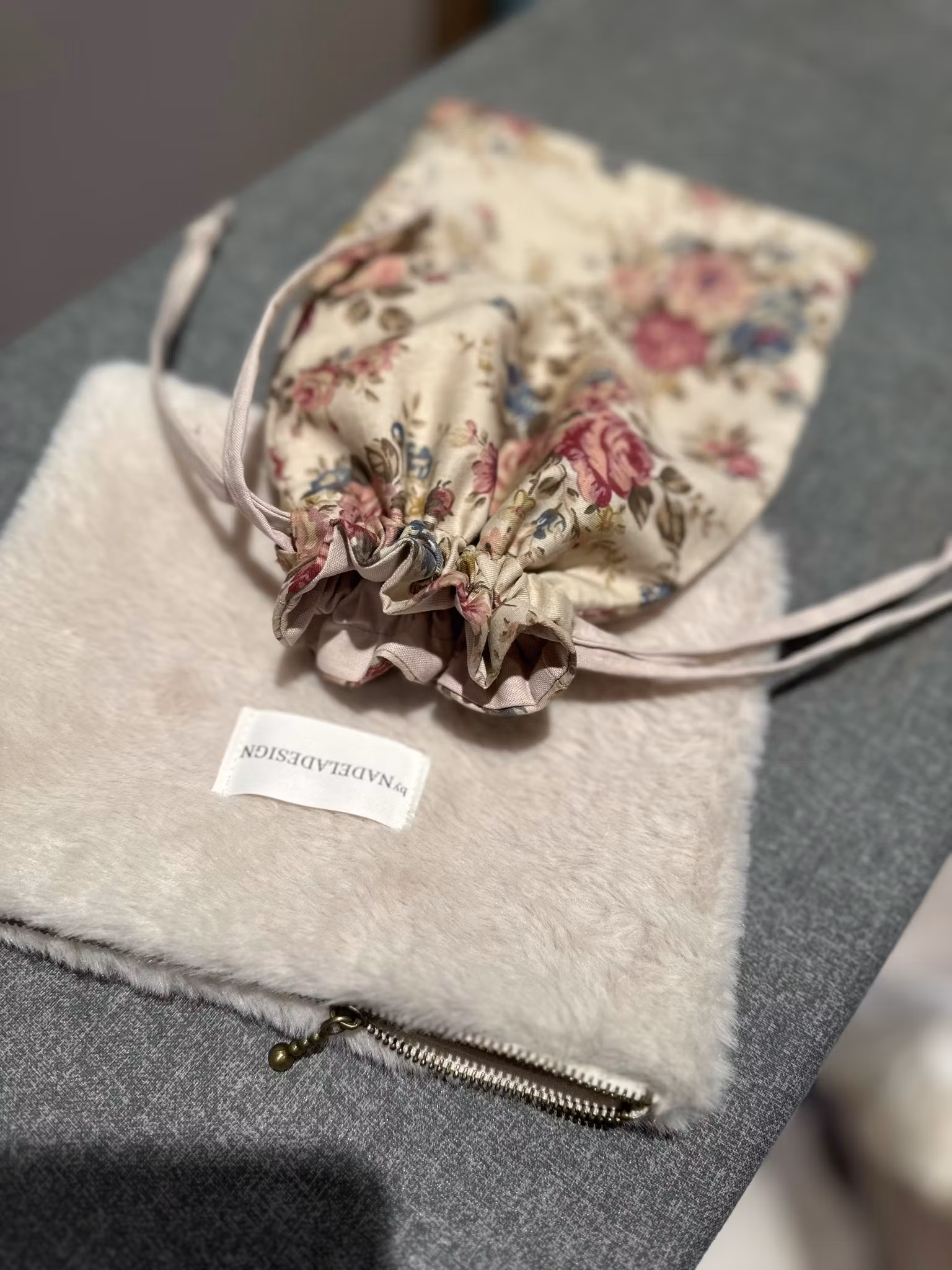 Match den med brush bag i søt blomsteret stoff.